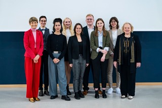 v.l. TU-Präsidentin Angela Ittel mit den Preisträger*innen Paula Hainz, Pinar Dogantekin, Vivien Schüer, Inka Peschel, Maik Weber, Corinna Thoben, Sarah Koop-Brinkmann und der Stiftungsvorsitzenden Brigitte Blum. Bildnachweis: Madeleine Franke/TU Braunschweig
